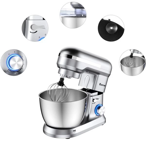 Costway 3.8 L 8-Speed Silver Stand Mixer