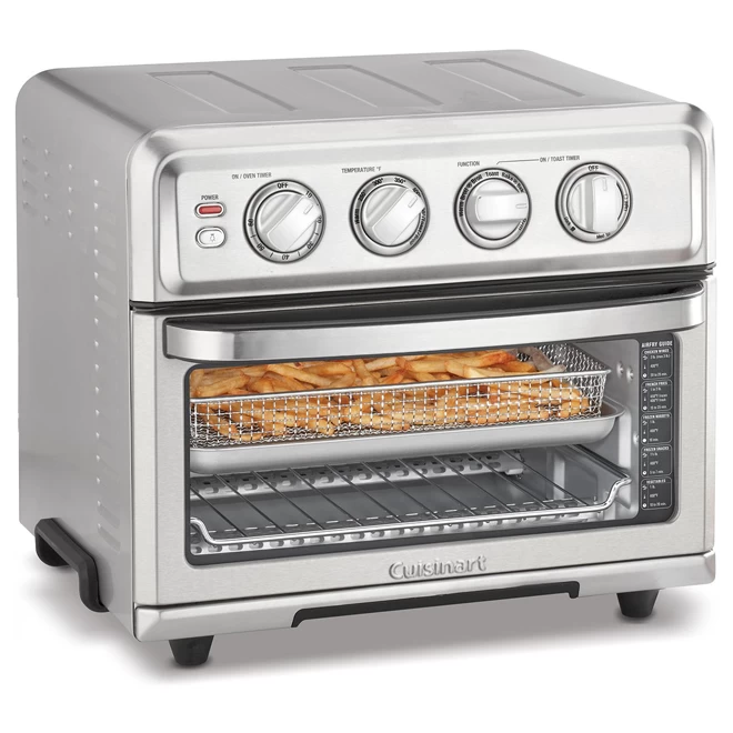 The Cuisinart AirFryer Toaster Oven is a premium full-size toaster oven with a built-in air fryer. That means it not only bakes, broils, and toasts, it also lets you air-fry right inside the oven. Air frying, which uses powerful ultra-hot air, is a healthier way to prepare delicious fried favourites, from wings to fritters to fries to shrimp. And since toaster ovens stay on the countertop, this fryer doesn/t have to move back and forth, from cupboard to counter. Enjoy the crunch without the calories and messy cleanup, with the AirFryer Toaster Oven from Cuisinart!
