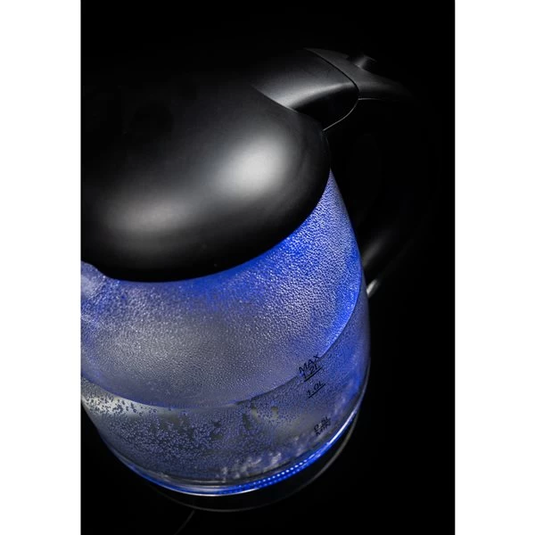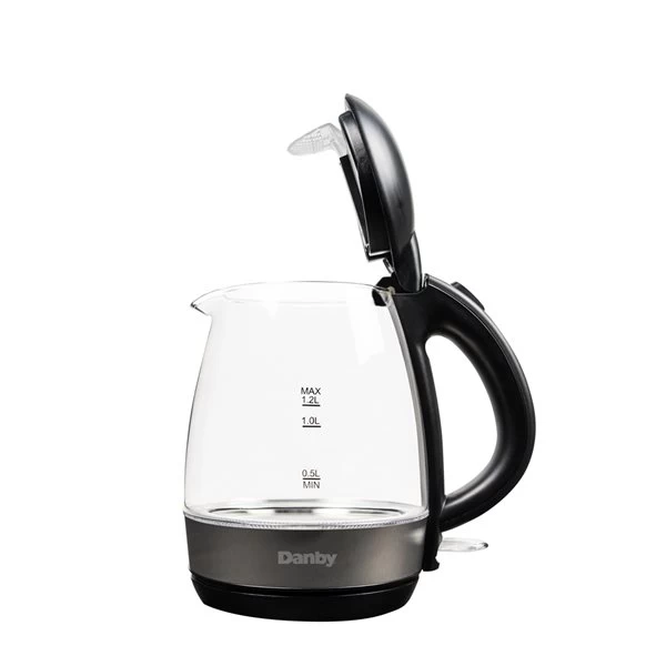 Enjoy the perfect cup of tea, hot chocolate, or make instant meals with the 1.2 L capacity glass kettle by Danby. Ideal for small households to make a quick drink or for the college student short on time but needs a quick meal. Features include a blue LED indicator light when turned on and a built to last design that is compact, space-saving and looks great in any modern kitchen. With 1500 watts, this electric kettle is easy to operate, store and can boil water faster than a microwave. The powerful rapid-boil system provides fast heating from any standard outlet and the auto shutoff function helps keep the kettle from boiling dry. Pair this model with your French press and make the ideal cup of coffee. All your hot beverages and quick meals can be served easily with the 360 degree rotating base, allowing easy filling, and pouring without the cord.