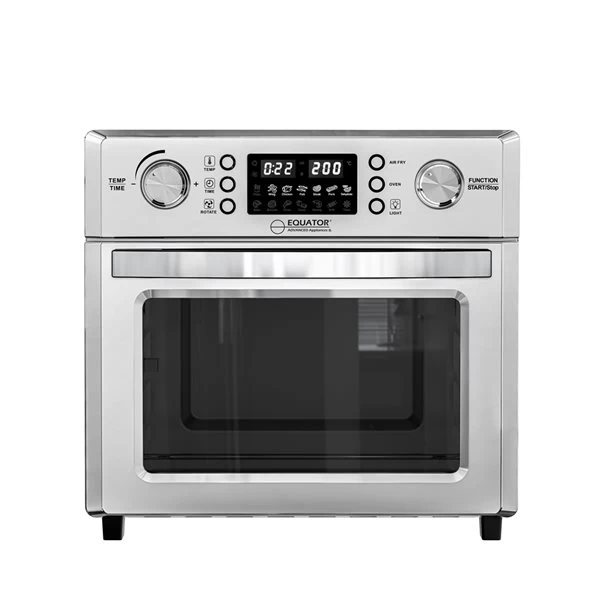 The Equator 5-in-1 Air Fryer AF 500 is the last all-in-one countertop appliance you’ll ever need! Elevate fries, chicken wings, and onion rings to healthy, crispy perfection. This appliance is equipped with 15 one-push cooking functions to handle all your favourite meals without the added fat. From perfectly baked pizza, char-grilled steaks, rotisserie chicken, and melt-in-your-mouth cookies, the gourmet possibilities are endless. An air fry basket, wire rack, baking tray, rotisserie cage, and several more essential accessories are included. You’ll never be wondering what to make for dinner with this Equator air fryer!