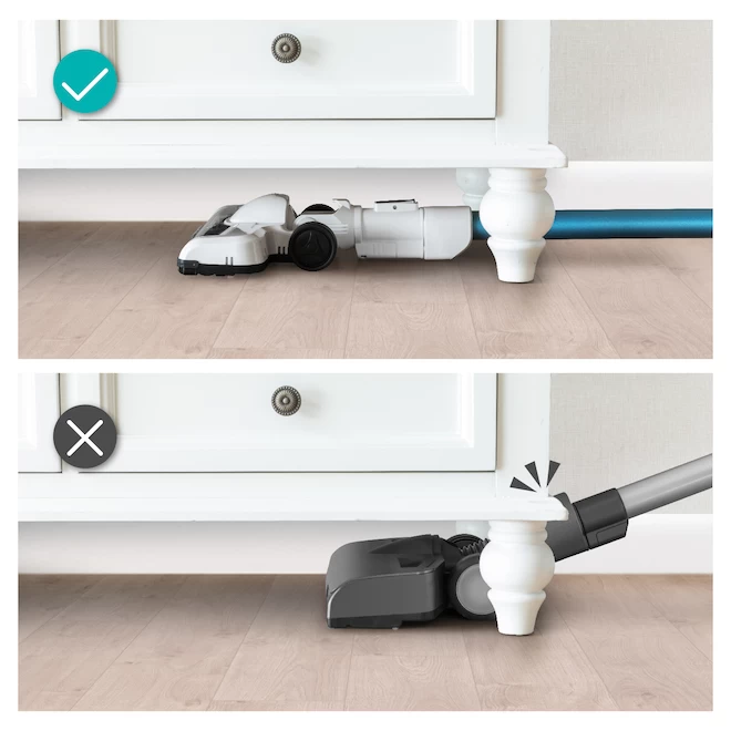 - Under furniture reach: we moved the dust cup to the front so you can lay the vacuum completely flat to reach under beds and furniture with ease