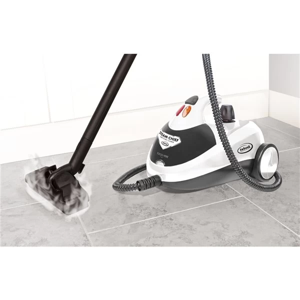 Ewbank SC1800 Steam Chief is a powerful tool for chemical free cleaning and sanitization jobs for commercial or residential needs. Comes with high pressure turbo brush to handle all kinds of tough jobs. ABS body with steel tank and double insulated hose for safety. Best tool to clean boats, messy grills, messy stove, shower glass, windows, and make easy a tough job like cleaning tile grout, sanitizing from mould or a delicate job like steam fresh and remove wrinkles from clothes. The powerful Steam Chief effortlessly cuts through dirt and grease without the use of chemicals. The high-powered boiler generates steam on demand at up to 54 psi (3.4 bar).