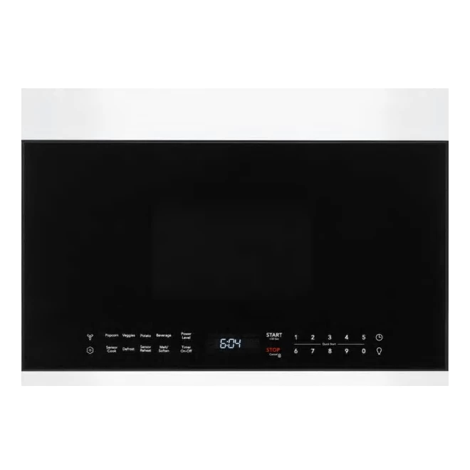 This over-the-range Frigidaire microwave oven has a beautiful white exterior that’s sure to match any decor. Its full-width door helps maximize space inside the microwave to make room for larger dishes. It has LED lighting inside and out to enhance your visibility of the cooktop. What’s more, this appliance is equipped with an extra-large 13.63-inch glass turntable and an automatic sensor. One-touch buttons make it easy to prepare baked potatoes, popcorn and other popular microwavable dishes. The hood offers 2 fan speeds with a maximum airflow of 300 CFM.