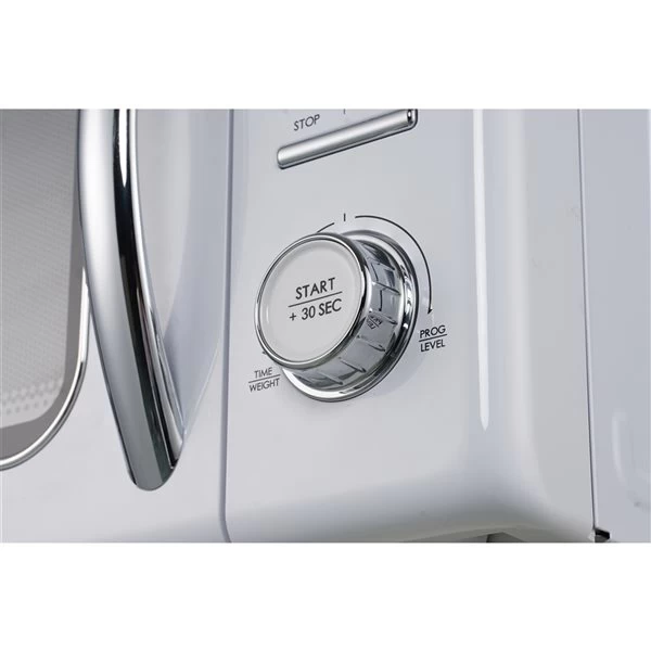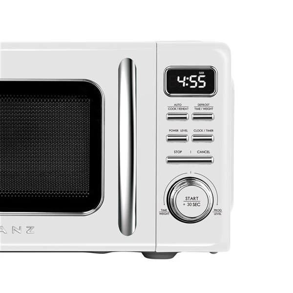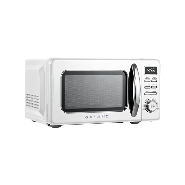 Galanz retro microwave oven offers a uniquely nostalgic style with its bright finish and chrome metal accents, adding style but still function in your modern kitchen. It is a fun and stylish addition to any kitchen, rec room, office or dorm room. This microwave makes cooking and reheating meals or beverages simple, quick, and convenient. With adjustable power levels, time and weight defrost programs and other functions, this microwave oven offers a variety of menu choices to complete your cooking tasks.