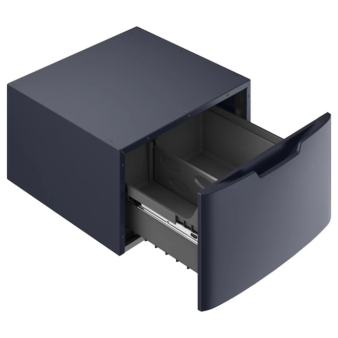 This sapphire blue spill-resistant 16-inch pedestal raises the dryer and washer to a comfortable working level. The storage drawer provides storage for laundry additives or accessories. The stainless steel ball bearings allow easy gliding. Adjustable dividers. Easy installation – all installation parts are included with pedestal.