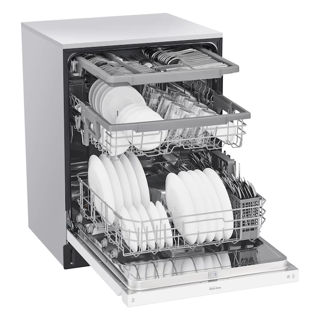 LG 24-in White Slide-in Dishwasher With Front Controls And QuadWash
