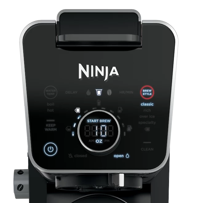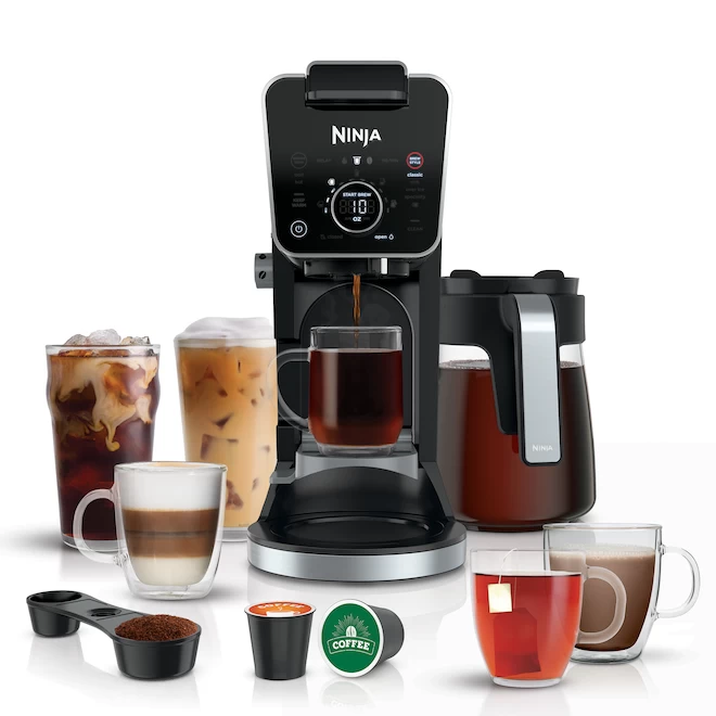 The Ninja DualBrew Pro Specialty Coffee System delivers classic, rich, over ice, and specialty brews from your favorite coffee grounds or coffee pods. Customize your brew with 9 grounds sizes from single serve to carafe and 4 pod sizes from 6 to 12 oz. Use the fold-away frother to create cappuccinos and lattes or dispense hot water from the independent hot water system to make tea or soup.