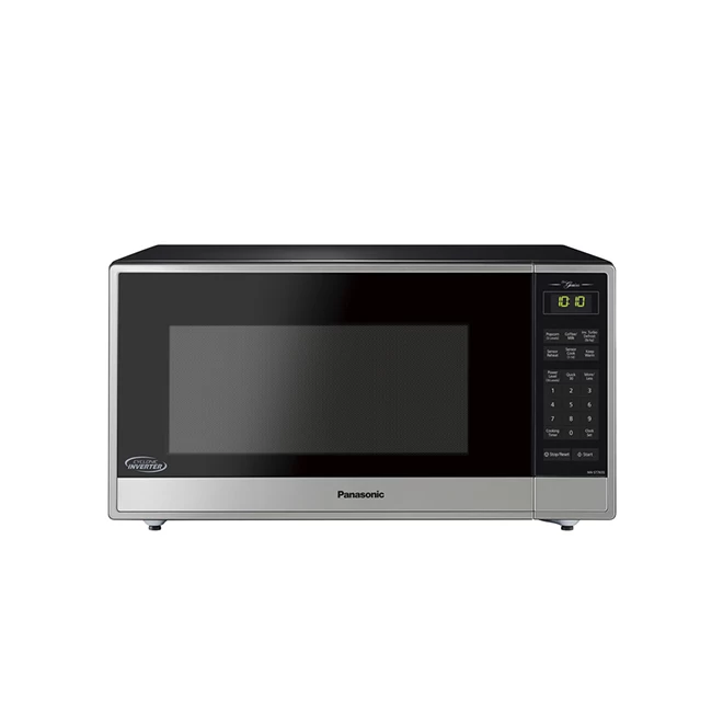 This Panasonic(TM) microwave oven is equipped with the Cyclonic Inverter(TM) technology that distributes heat within to ensure even cooking of food of any shape or size. This model possesses a 1.6 cu. ft. cavity along with a 14,96 in. (38 cm) turntable. This microwave oven features 10 power levels as well as programmable functions for popcorn, defrost and reheat. This product is backed by a 1-year limited warranty.