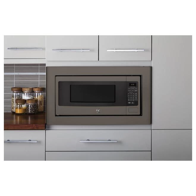 small kitchens in apartments or condos. In addition, preparing your favorite meals is child’s play, thanks to sensor cooking options, convenient controls that don’t require any special programming, and features that can be combined when your meal requires multiple cooking steps. A specific function is available when you want to get a tasty popcorn without burns. You also have the option to lock the controls on the electronic panel, which prevents children from accidentally starting the microwave. Backed by a 1-year limited warranty, parts and labor.