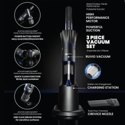 - Included: 1 Ruvio Pro portable vacuum unit, 4.5-watts charging dock station, 6-in crevice nozzle, a replacement HEPA filter and user manual