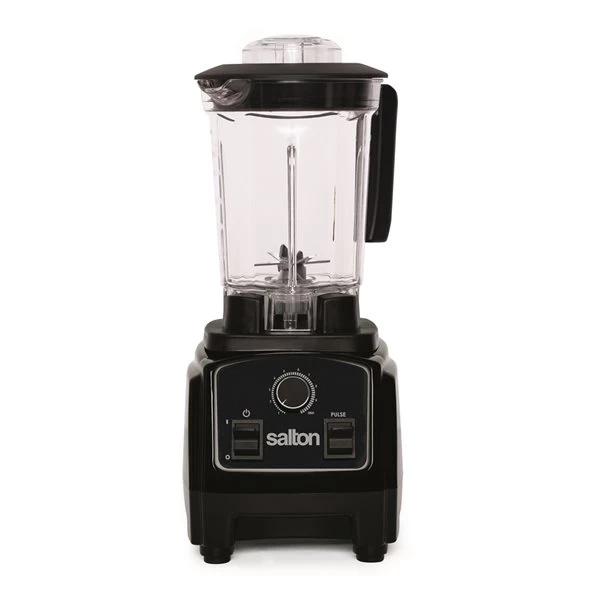 The Salton blender has a Vortex Jar with 6 Japanese stainless steel blades and a 2 HP, 23,000 RPM, 1000 watt motor. With its powerful motor and innovative design, it can blend, emulsify, chop, purée, crush and even make a hot soup! No matter what you throw into the 1.2-L Vortex jar, the Salton blender will handle it easily.
