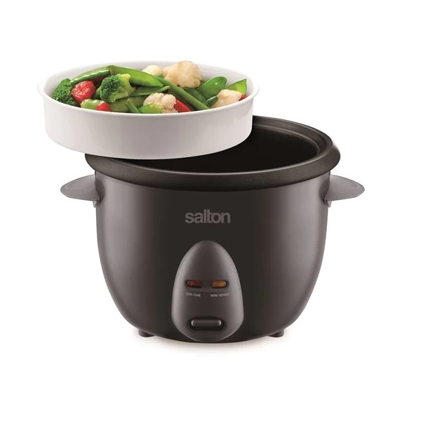 This Salton rice cooker can cook up to 10 cups of perfect rice and keep it warm until you are ready to serve. The non-stick bowl can be removed for easy cleaning! It comes with a convenient “stir and serve” spatula and a glass lid to monitor the cooking process. The included steaming basket lets you prepare vegetables, fish and more while your rice cooks. Make the perfect amount of fluffy rice every time!