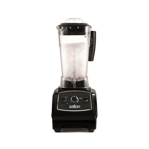 The perfect blend of power and affordability. The Salton blender is powered by a 1500 W, 2 HP motor that produces 30,000 RPM, and includes an 8-blade blending system that will blend, crush, emulsify, chop, purée and liquefy whole fruits and vegetables, ice, frozen fruits and nuts. Start your morning off with a smoothie, prepare hummus for a snack and a hot soup for dinner. No matter what you throw into the 2L Vortex jar, the Salton blender will handle it easily.