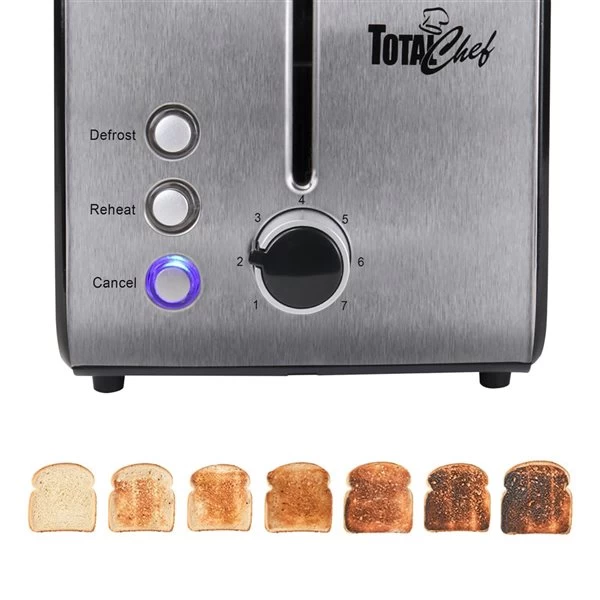 Total Chef 2-Slice Stainless Steel Toaster With Defrost And Reheat