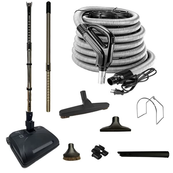 Deluxe light-weight Crush-Proof electric high voltage hose comes with a 360 degree full swivel handle. This accessory kit is designed for all major brands of central vacuum