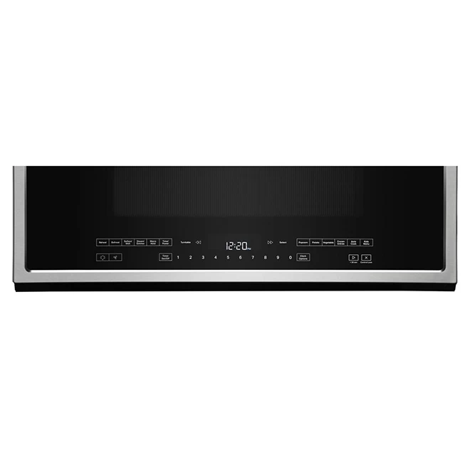 This microwave has a sensor cooking system. This allows you to eliminate guesswork since the sensors monitor the cooking progress and automatically adjust the cooking time. The stainless steel finish resists fingerprints thus reducing cleaning time. Steam your food (rice, vegetables, fish) to have more space on your counter. Steaming accessories are sold separately. The turntable can be turned on or off to accommodate a wide variety of dish sizes. Your time is precious, take advantage of the pre-programmed settings to save time. You will have the ideal amount of heat and time for cooking or defrosting. For cooking already in progress, quickly set the microwave oven timer to 30 seconds or add 30 seconds at the touch of a button. Choose the right lighting for the cooking surface. The adjustable lighting lets you see clearly what you are cooking under the microwave or to keep a night light in the kitchen. The hidden vent elevates the design of the product. With a cooking power of 1000 watts, you will benefit from quick and even cooking. This essential kitchen tool is backed by a 1-Year limited warranty (parts and labour).