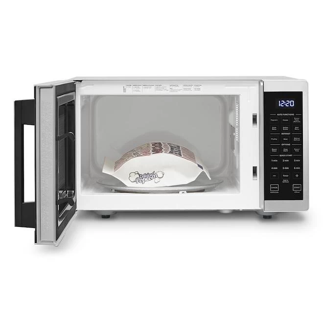 This Whirlpool countertop microwave gives you the space and quick cooking you need to cook day-to-day meals. Extend cook time with the add 30-second option, activate keep warm so your food stays ready to serve and automatically cook popcorn right using the popcorn preset.
